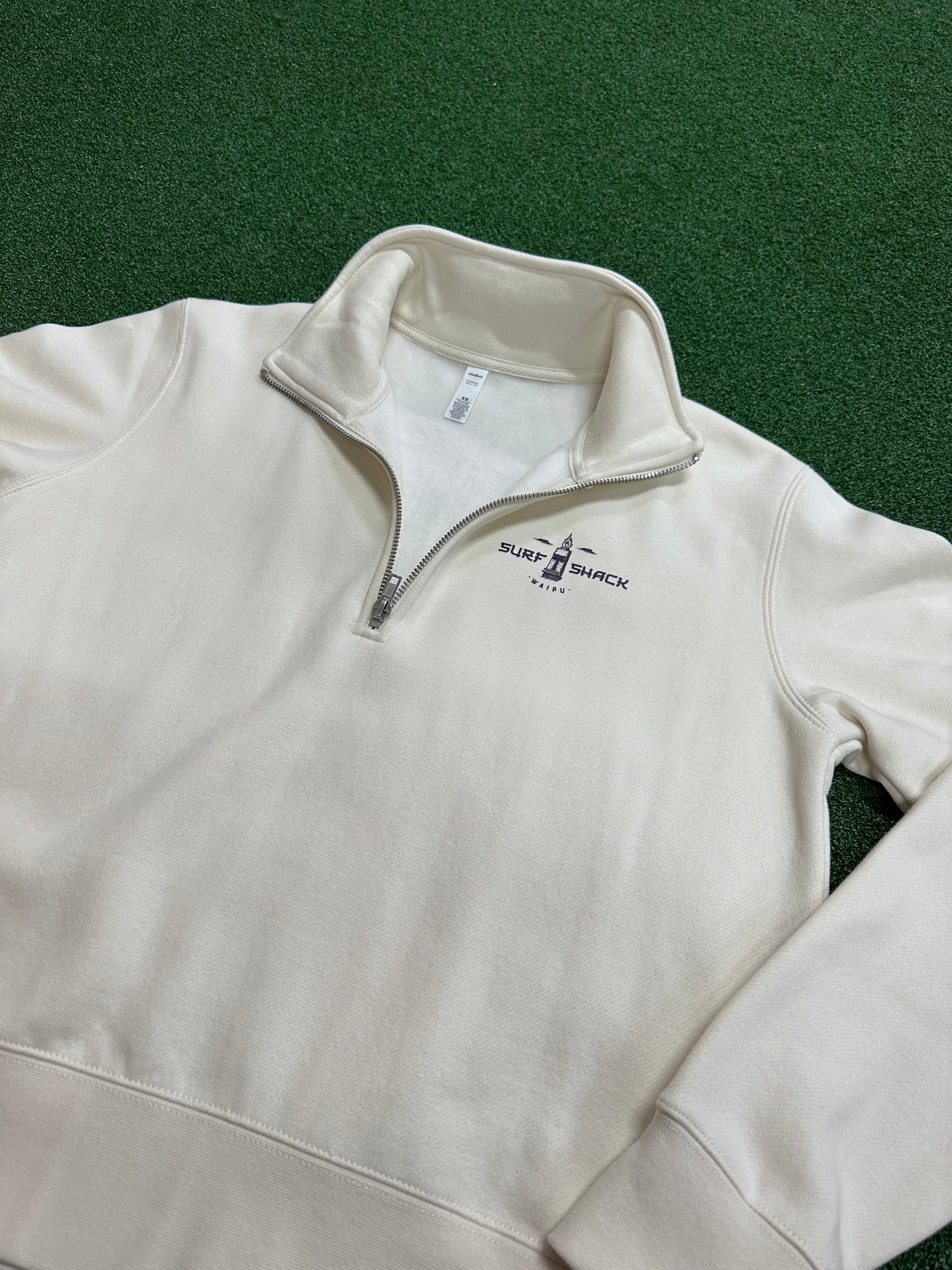 Designed with comfort in mind that’s perfect for layering year-round. The half-zip front lets you adjust your look—from cozy and zipped up to laid-back and open—while the cropped, boxy fit and dropped shoulders add an effortless edge. Finished with stencil-style detailing, this crew is all about bold design with a coastal twist.